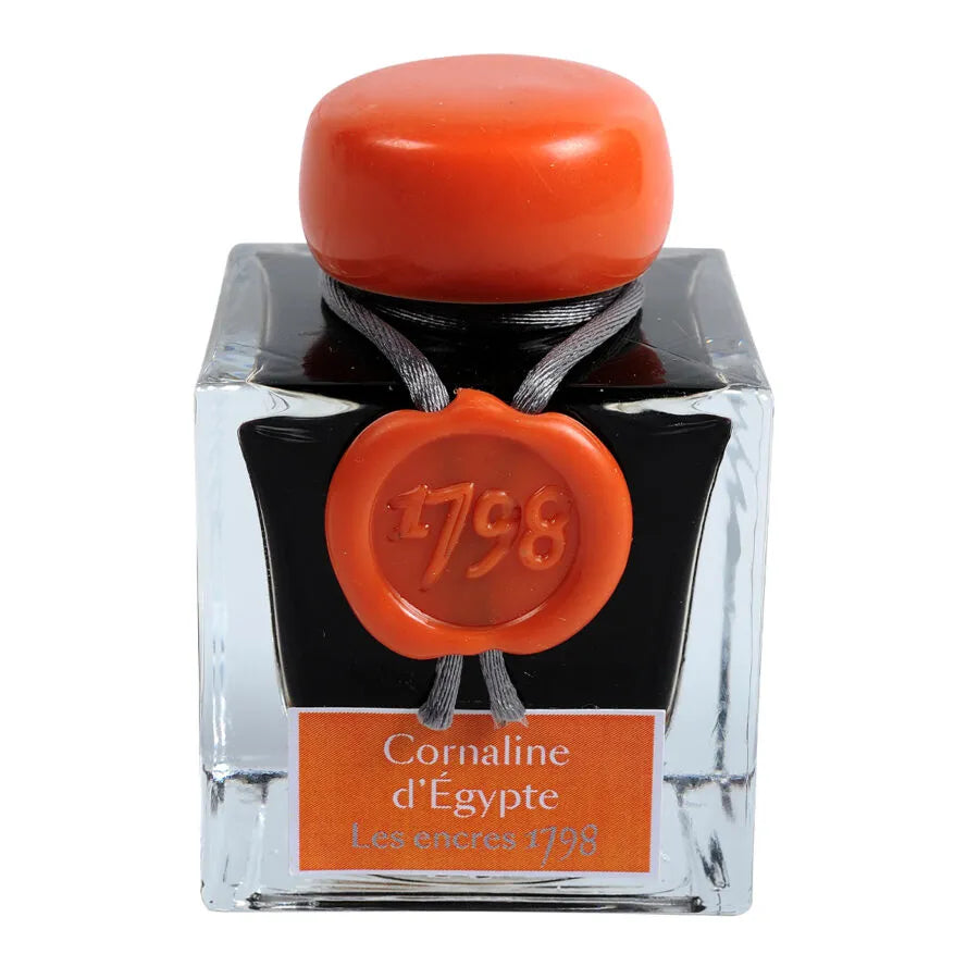 Gli inchiostri 1798, dell'esclusiva collezione Jacques HERBIN Prestige, celebrano la data di produzione originale degli inchiostri Jacques HERBIN, un evento decisivo nella storia della maison fondata nel 1670. Questi colori intensi e profondi sono illuminati dallo scintillio delle scaglie d'argento. La corniola egiziana color ocra, ispirata alla pietra preziosa, è esaltata dalle scintillanti scaglie d'argento. Dona calore ed eleganza a ogni tuo scritto. Gli inchiostri 1798 sono adatti per penne stilografiche, roller, pennini in vetro e porta stilografiche. La ceratura del tappo e il sigillo sul flacone sono realizzati a mano nell'atelier Jacques Herbin. Prodotto in Francia.