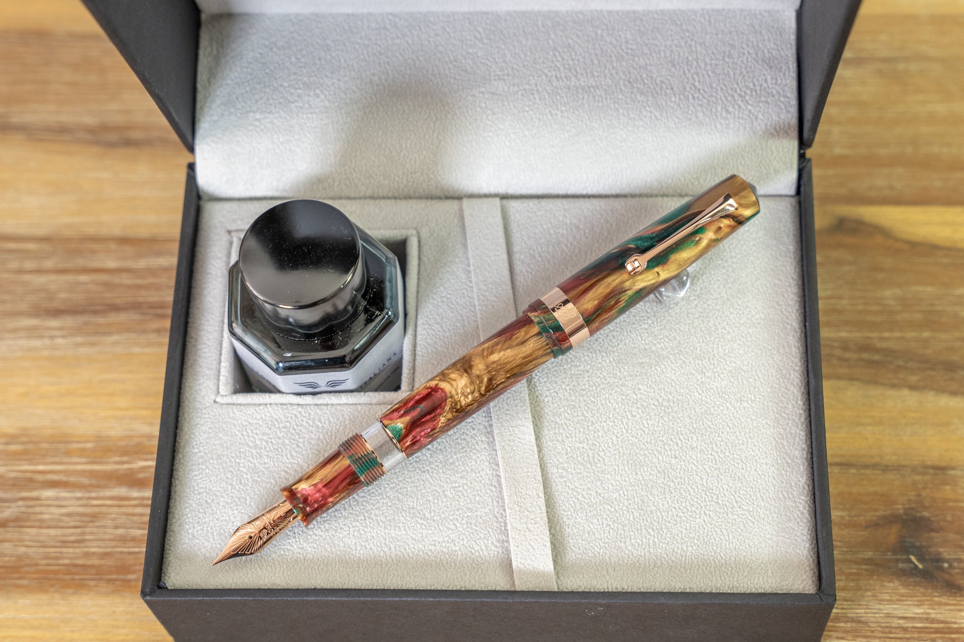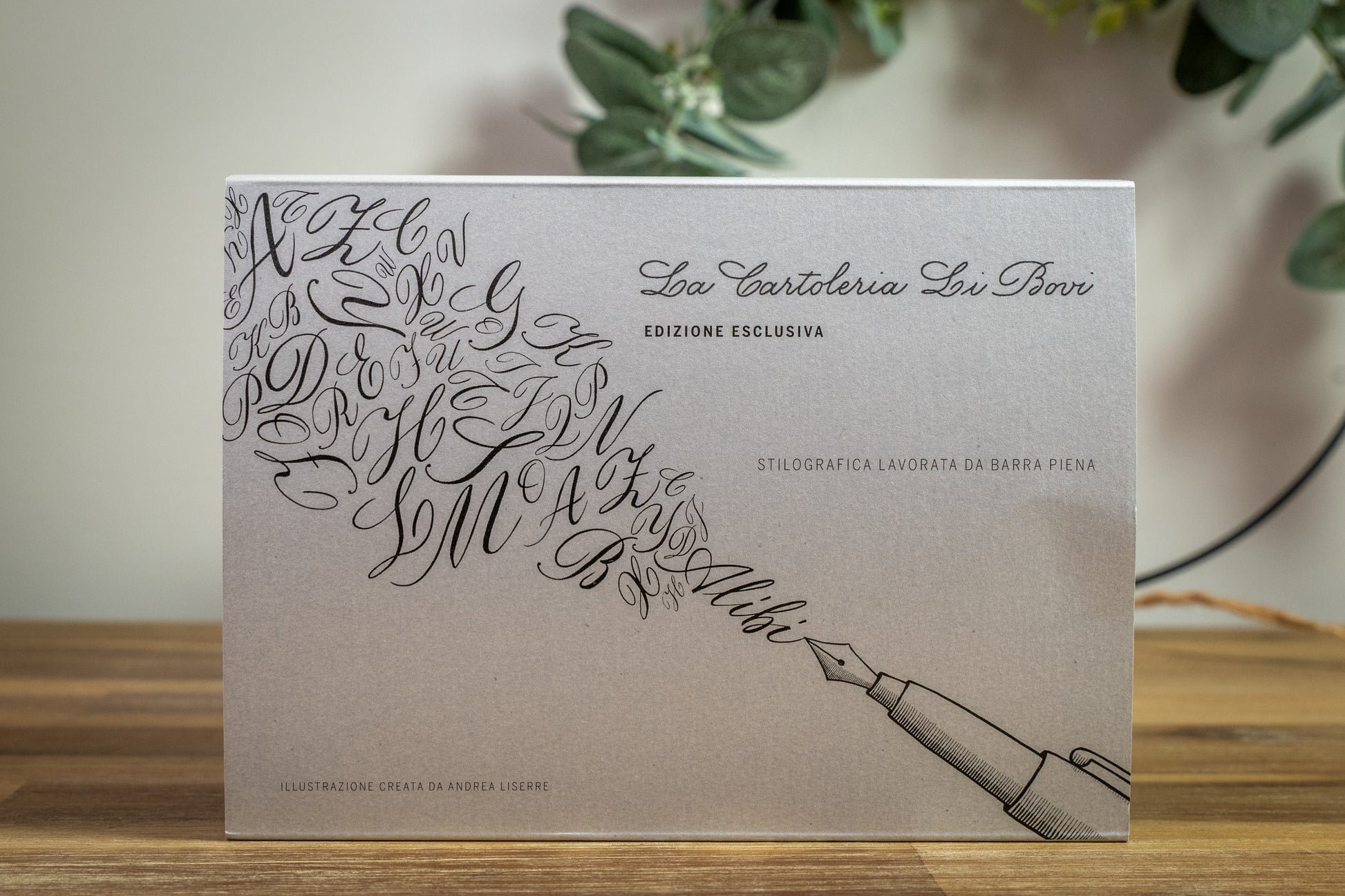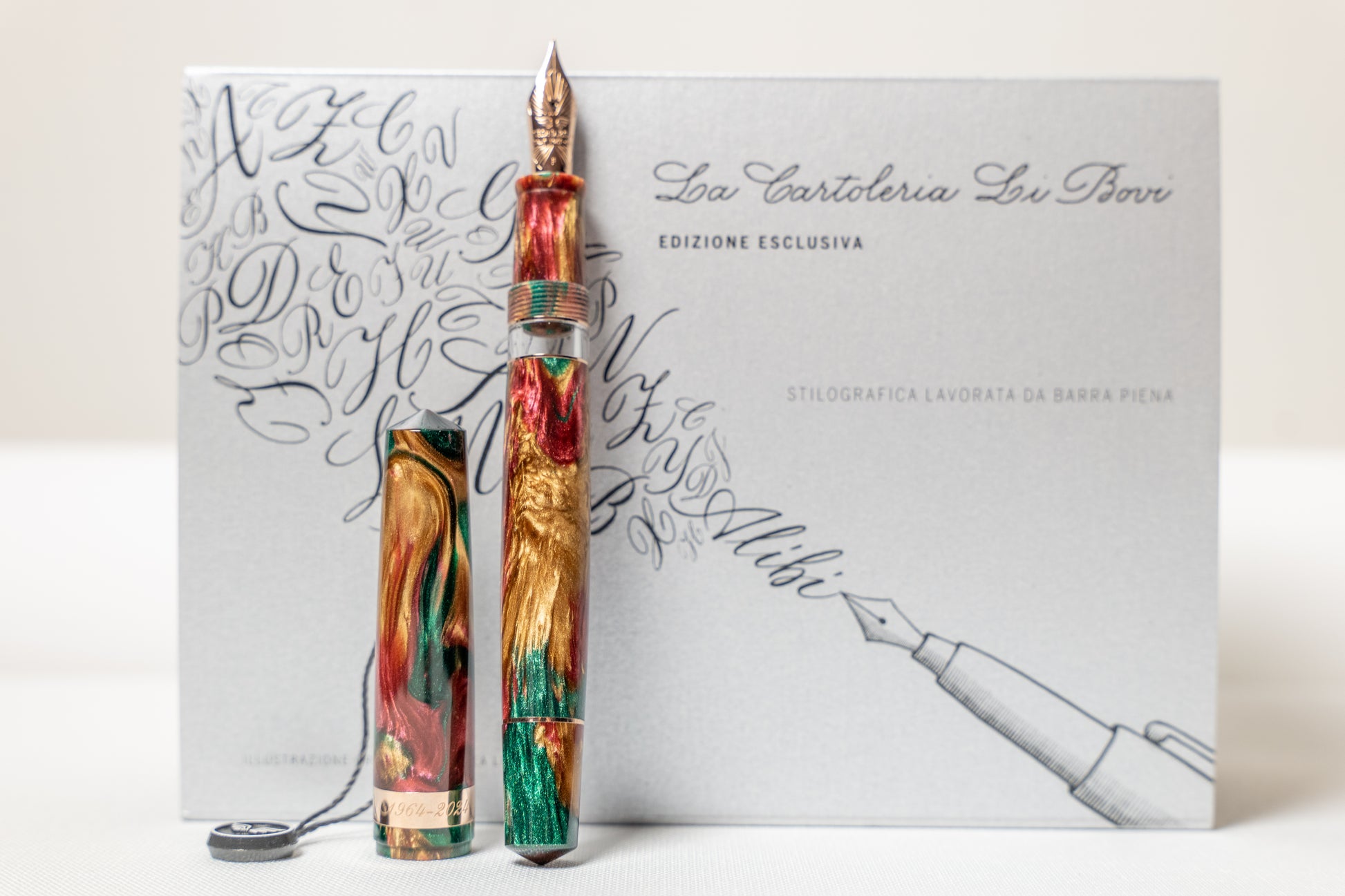 Penna stilografica Alibi con corpo in resina estrusa da barra piena, caricamento a stantuffo e pennino in acciaio La Fenice n.6 edizione limitata numerata.